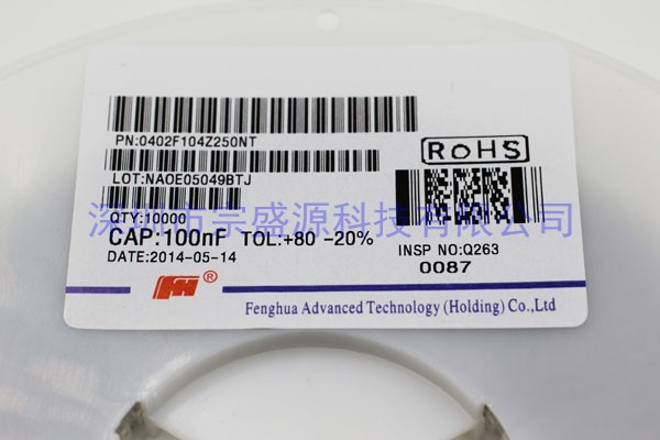 產品名稱:風華陶瓷電容 0402 25V 0.1UF 0402F104Z250NT