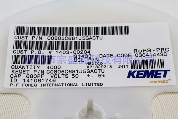 產(chǎn)品名稱:KEMET陶瓷電容 0805 50V 0.68UF C0805C681J5GACTU