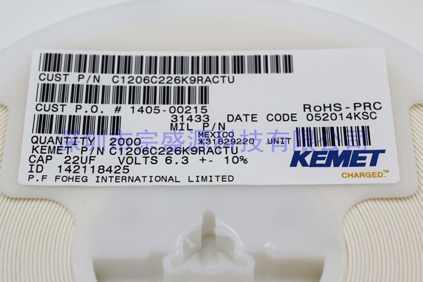 產(chǎn)品名稱:基美陶瓷電容 1206 6.3V 22UF C1206C226K9RACTU
