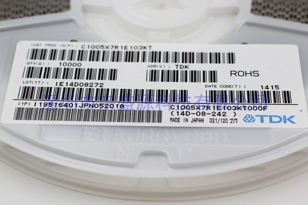 產品名稱:TDK陶瓷電容 1005 25V 0.01UF C1005X7R1E103KT