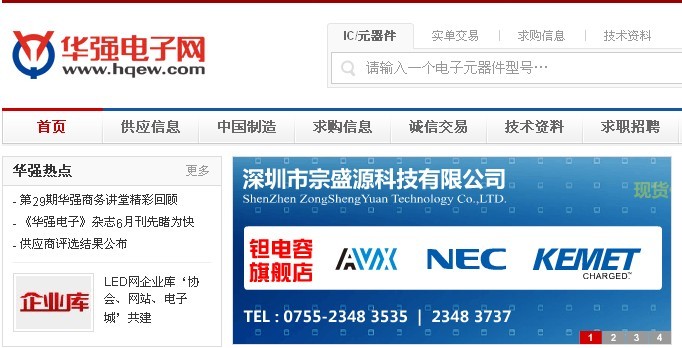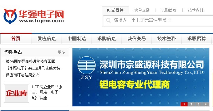 華強電子網(wǎng)提供最新的電子元器件資訊,電子技術(shù)資訊,LED資訊,IC資訊,非IC資訊,電子信息,展會信息,是您了解最新的電子元器件信息的最佳平臺。熱烈祝賀深圳市宗盛源科技有限公司華強電子網(wǎng)首頁廣告隆重上架。