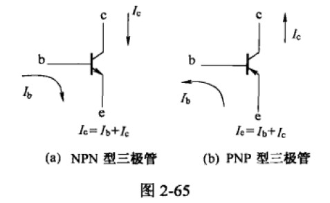 PNP型管工作時,集電極c和基極b接負極,電流由發射極e流向集電極c和基極b,其圖形符號中箭頭向里即表示了電流方向,如圖中2-65所示。