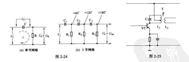 在0-90度,由R、C的比值決定。當需要的相移角超過90度時,可用多節移相網絡來實現。圖2-24(b)所示為3節RC移相網絡,每節移相60度,3節共移相180度。