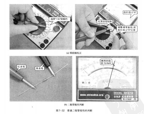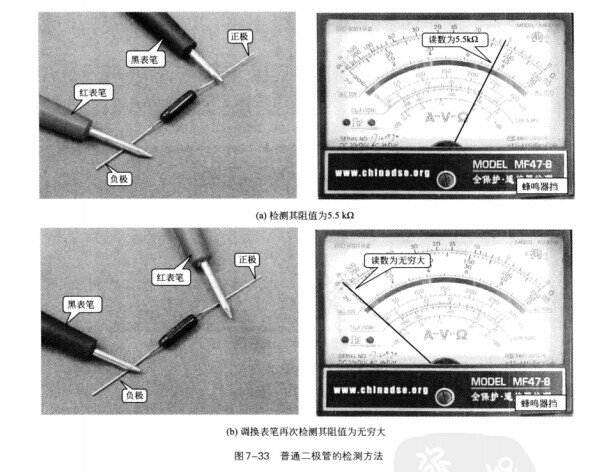 普通二極管極性的判斷見(jiàn)圖7-32。